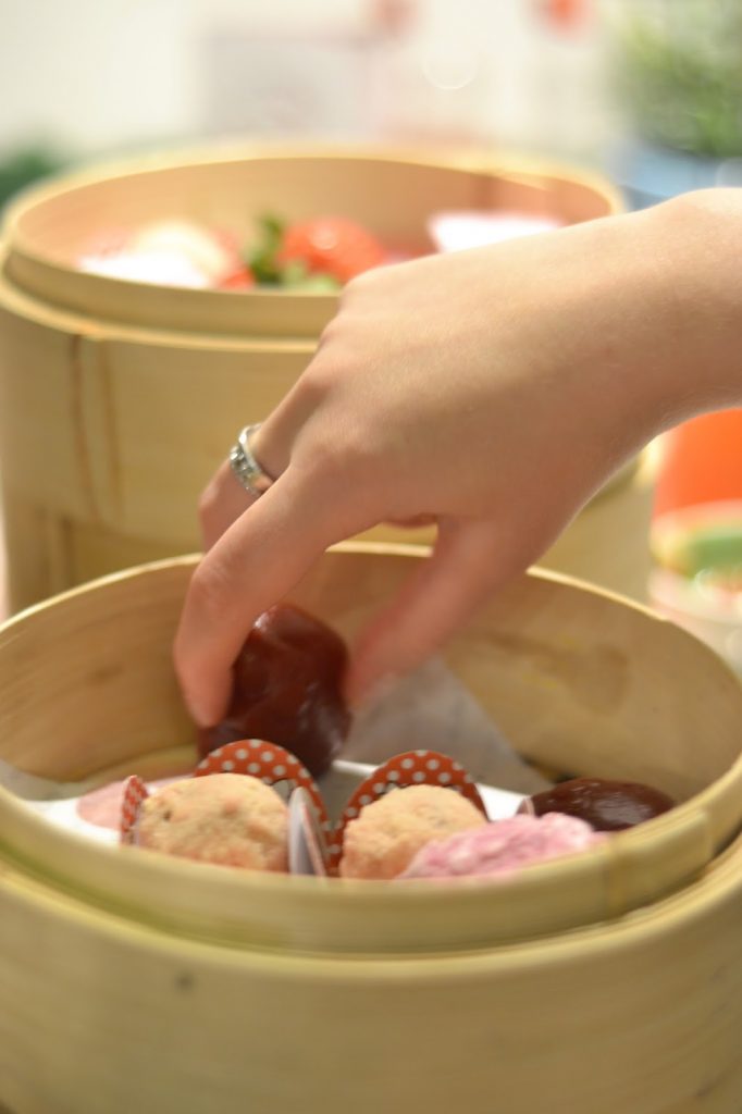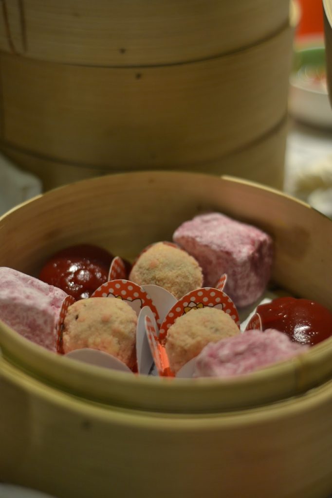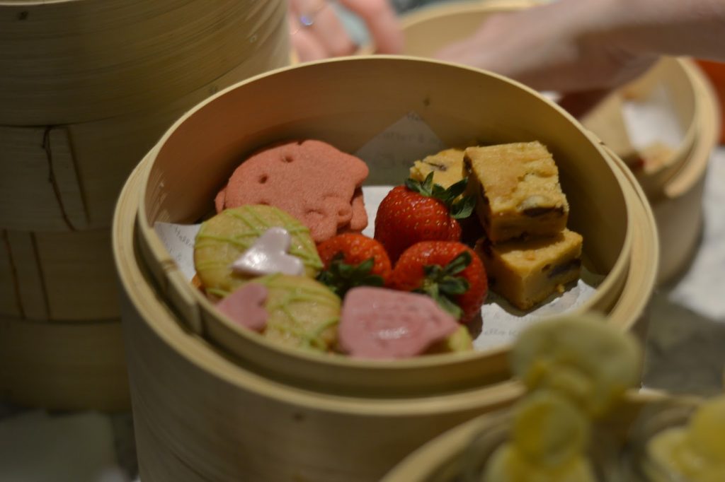Our afternoon tea set was served to us in traditional Chinese dim sum bamboo steamers which I suppose I found odd but made a lovely nod towards Hello Kitty’s Asian roots. Kind of. Sanrio is Japanese, but whatever.