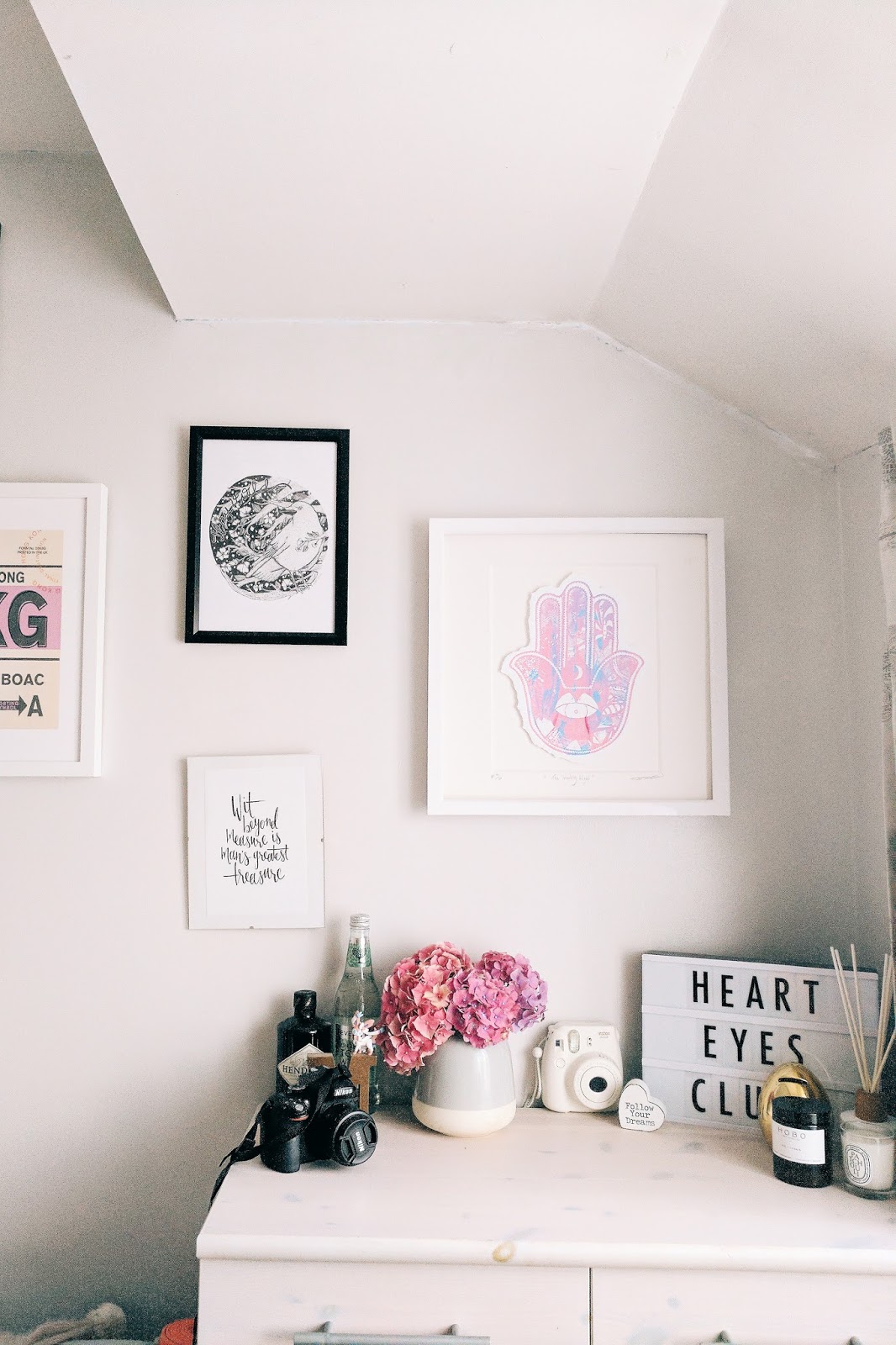 八. How my hydrangea clippings match the new print hanging up in my bedroom.