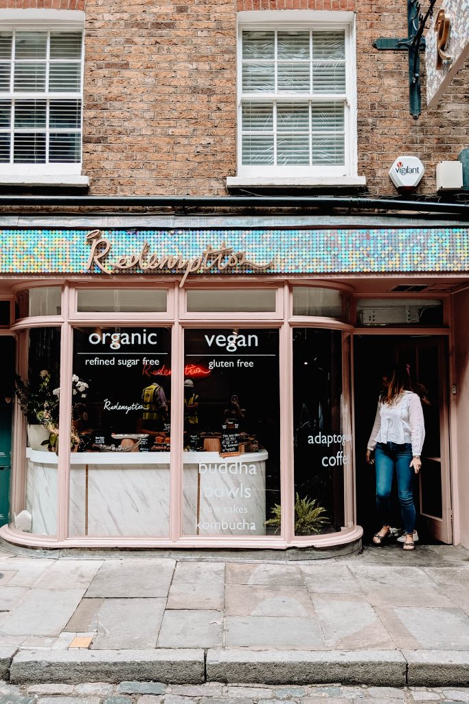 Slip through to Neal’s Yard (where there are endless shops to peruse – Brandy Melville, Astrid & Miyu included) for a spot of vegan lunch at Redemption. I absolutely LOVE it here. I always go for the build your own Buddha bowl because I’m oh so predictable, but the menu is vast and their desserts and sweet treats are a delight. Pick up a slice of banana bread to go.