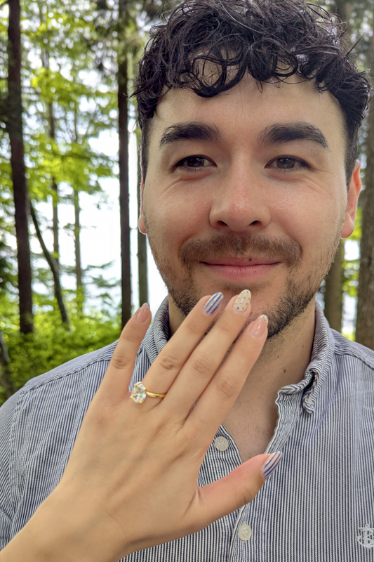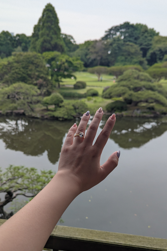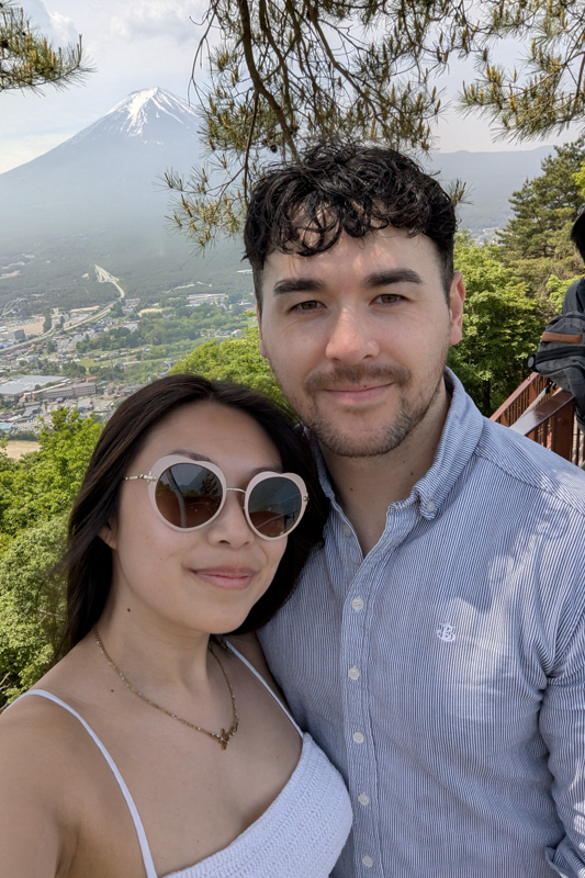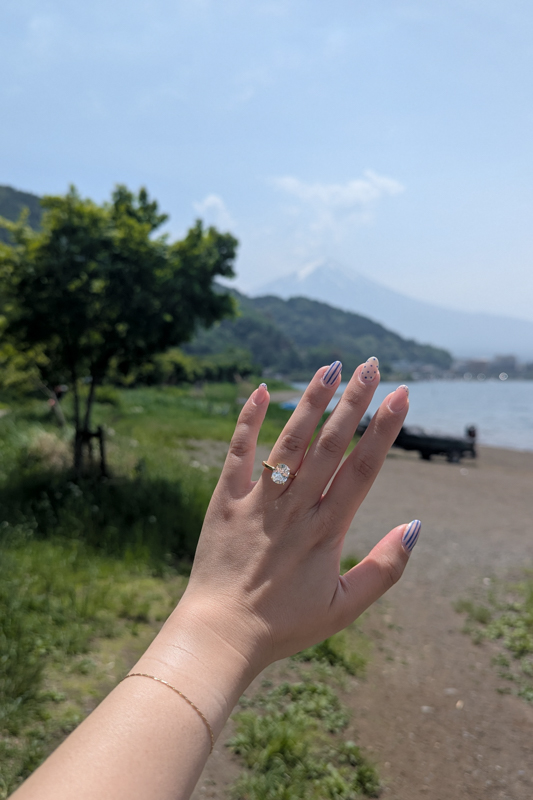After checking the Fuji-san tracker, we headed to Mount Fuji the next day. Since visibility changes often, it’s recommended to use this tracker to see whether you’ll get a view of the famous mountain before you head out. We picked tickets up at Shinjuku Station, grabbed our station eki stamp, and then hopped on our two-and-a-half hour train to Kawaguchiko. There’s a few other spots that you can disembark the train at: Mount Fuji for the town, or Shimoyoshida for the famous Chureito Pagoda view. We chose the lake view because I am besotted with bodies of water. Of course, by now, you know that we got engaged from a mountainside spot above the Panoramic Ropeway! Next time, I’d love to spend two or three days here to explore more of the area.