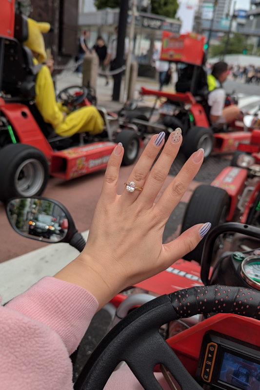 Eddie had booked us a Street Kart experience that started at 10.30am, so we headed for Shibuya, leaving plenty of time to collect our eki stamp en route. This is, of course, a touristy experience, but I thought it was a great way to see Shibuya and Harajuku! Our host was incredible! And, of course, I couldn’t help but take a photo of my ring.