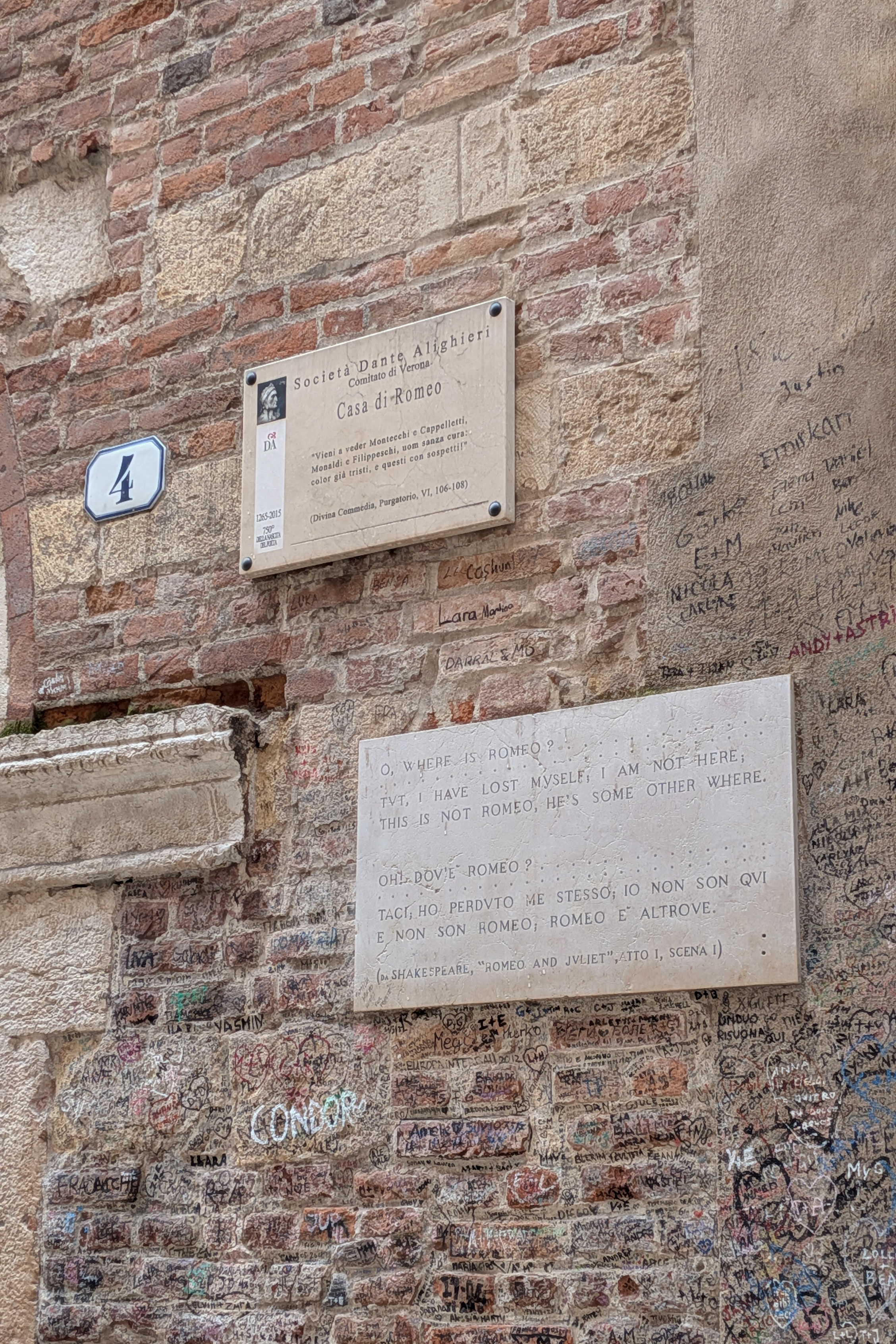Then, glimpsing parts of the Roman wall that were crafted with recycled slabs from elsewhere in the city. Finally, to discover the Montecchi family house, also known as Romeo’s house, since this is where the real-life Montecchis lived (trans. Montague). Alternatively, it was funny to hear that the more-famous Casa di Giulietta never housed the Capulets, and Shakespeare supposedly never even visited Verona for writing inspiration – it’s said by the Veronese that he pinched the tale from an Italian author.