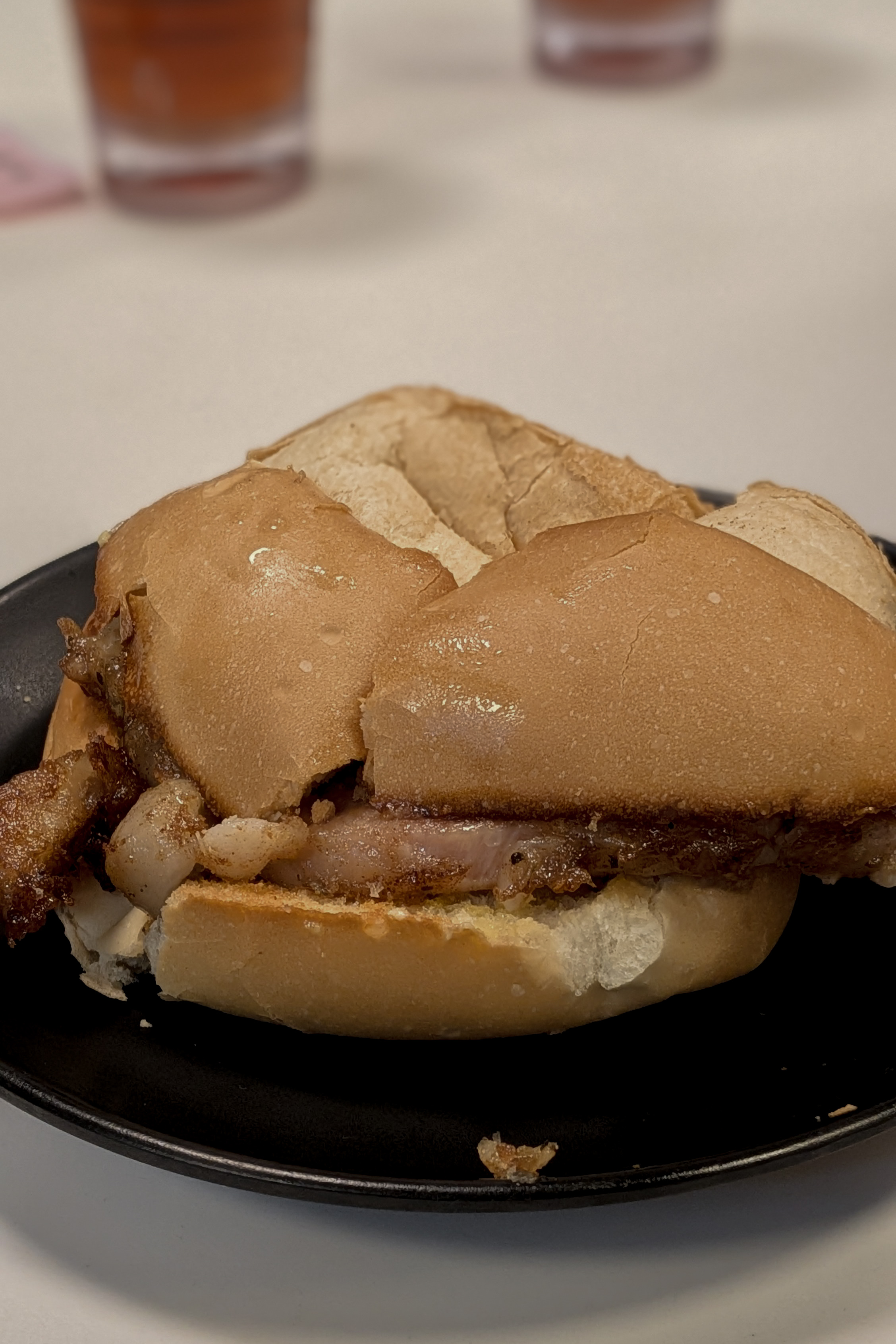 After, we popped over the road for pork chop buns, a famous street food in Macao. The ones here were average, so I won’t share the café, but these are a juicy pan-fried pork chop served in a crisp, Portuguese-style bun with caramelised onions.